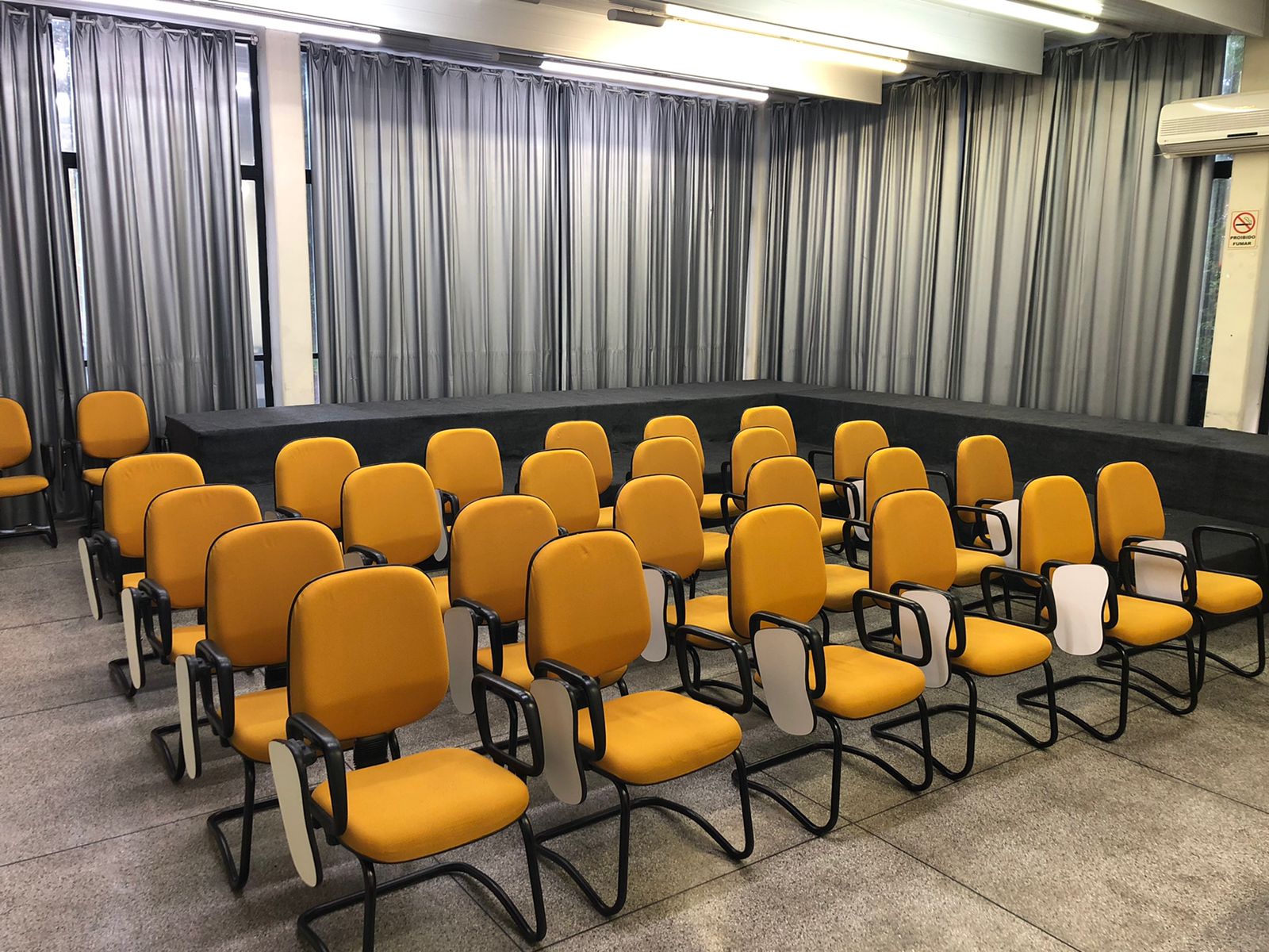 Capacidade: 50 pessoas (sendo 24 em cadeiras com braço + 26 em arquibancadas)